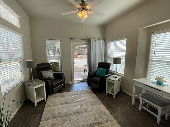 A beautifully appointed park model home that offers everything you need for comfort & convenience. This park model is 1 bedroom and 1 bathroom retreat model with a galley kitchen and tuxedo cabinetry. The kitchen includes white appliances and a full backsplash. The paver driveway offers stunning curb appeal while the paver patio allows for extra outdoor relaxation space. The shed has electric and a washer and dryer. This home is located in the most highly sought after 55+ community in Show Low. The site is a comprehensive lease. Annual site fee covers the homesite as well as water, sewer, trash service & basic internet. This saves on the cost of real estate taxes, HOA fees and year-round utility costs. The community is a 55+ Park Model community located in the tall pines of Show Low, Arizona. As a year-round community you can enjoy all four seasons of the White Mountains, imagine yourself enjoying the cool mountain air, shaded by the tall pines and watching the deer stroll through the forest, all while only one mile from major shopping, dining and state of the art medical facilities. An array of outdoor activities can be found nearby too. The community's Rules & Regulations prohibit the use of the home as a rental.