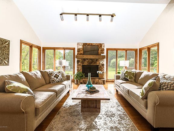 Amazing property in the heart of DeWitt! Nestled down a 400' tree-lined drive, you'll find this unique country home on 10 acres suited for a nature or horse enthusiast! This spacious 2,700 square foot home has 4 bedrooms, 4 bathrooms, two fireplaces (one wood-burning & one gas), wet bar, central vac, two-car attached garage, generator hook-up, and a finished lower level with full bath, office, workshop and rec room with two large sliders walking-out to pool area. Spectacular views from both the front and the back overlooking the beautiful features of the property: fenced garden area beautifully landscaped with flowers blooming throughout the year, built-in swimming pool, four-fenced pastures with dividers, carpeted tree house overlooking the creek, two-acre hay field, fruit trees, wildlife