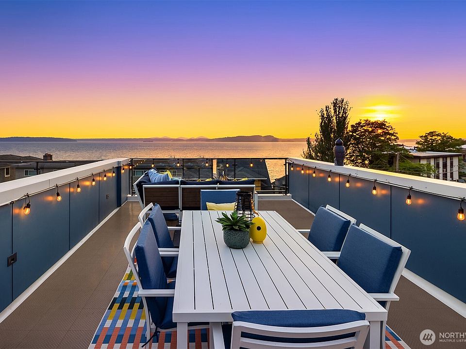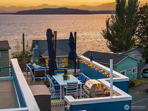 Nestled on one of Seattle’s most iconic waterfront streets, this modern stunner dazzles—soaring ceilings, walls of glass, open staircases & radiant concrete floors create a gallery-like backdrop for iconic Puget Sound views! The sleek Bosch kitchen flows into airy living spaces, while a chic primary suite + 2 versatile bedrooms offer serene retreats or the ideal office/den. The rooftop deck is a showstopper—twinkling lights, golden sunsets & sweeping west-facing views of the Olympics & Seattle skyline. Just steps to the beach path to launch your kayak or paddleboard, this home embodies the ultimate beach lifestyle. AC, 1 parking, storage & curated designer updates make it move-in perfect. This Beach Drive jewel box WOWS!