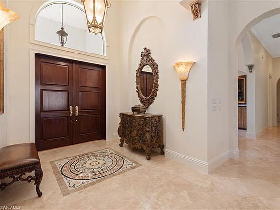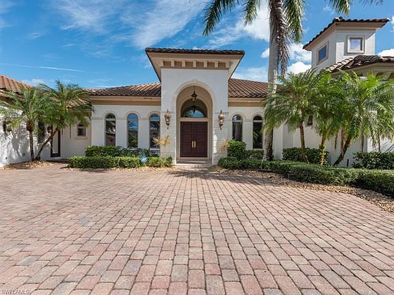 Gorgeous golf course and lake views, this former model home features impeccable attention to detail and expansive outdoor living with outdoor kitchen and loads of covered lanai areas for entertaining. Large circular driveway with fountain feature. Marble floors, butler's pantry, wine room, extensive crown molding detail, private cabana with walk out to pool area. Large Kitchen boasts oversize island, walk in pantry and Wolf appliances. Private and serene courtyard terrace off of guest bedroom. Award winning community with amenities galore, tennis, dining, golf, beach and yacht club. Close to shopping, downtown 5th Ave, 3rd street and beaches. New roof in 2018, all newer outdoor lighting through landscape front yard and backyard. 2 A/C units were new in 2020, 1 A/C was new in 2015.