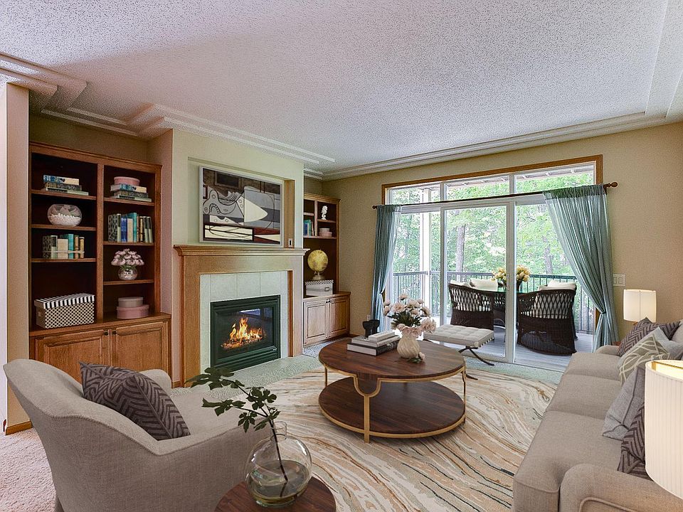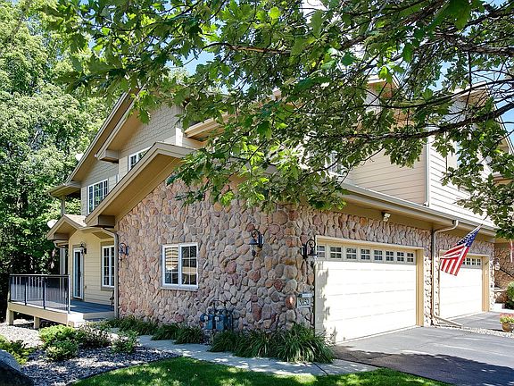 Beautiful one-level living in this sharp end unit, upgraded townhome with finished walkout LL. Everything you need on one level. Quality staggered cabinets and crown molding in kitchen/dining, hardwood floors, mission style doors and newer SS appliances. Owner's suite with jetted tub, double-sink vanity, custom walk-in closet. All baths have ceramic tile. Front and back decks, balcony & LL patio. Gas FP with built-in cabinet surround, ceiling fans, BR3/office no closet. Main floor laundry and large pantry off kitchen. LL BR has walk-in closet. Large family room with 9ft ceilings, 3/4 ceramic bath walkout to patio. Garage is sheet-rocked, insulated, has heater. Quiet street surrounded by mature trees. Great condition and private wooded view.