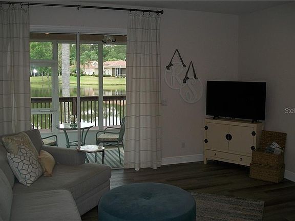Stunning 2 bedroom 2 bath villa with office/den and 2 car garage. End unit with a unobstructed view overlooking the tranquil lake. Beautiful wood grain tile throughout and was installed in 2019. All new appliances in 2019. Inside utility room. Screened porch and large wood deck overlooks lake. Enjoy the tennis courts, basketball courts, playground and hiking sidewalks throughout out the community.