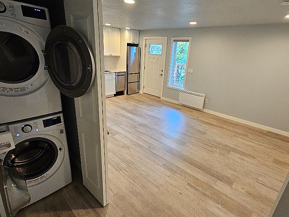 Recently renovated 1 Bed 1 Bath mother-in-law 450 sq ft High quality finishes and appliances, no-touch kitchen faucet, quartz countertop, slow close cabinets and drawers, all dimmable led lighting Appliances all new including HE washer and dryer Quiet neighborhood with street parking always available Quick access to west Seattle bridge at Fauntleroy, get to downtown/I-5 easy Bottom floor of a 3-story house, family of 4 living above Private and cozy - sound proofing insulation (previous tenant says apartment is quiet), apartment completely separate from house above, trees and bushes separate yard/house from street, rhododendron bushes in front of window Shared use of new turf and fenced front yard, short stairway down to sidewalk/street Temperature in the apartment is very temperate, cool in the summer (no a/c needed) and warm in winter Separate entrance into apartment, private mailbox $2100/month, 1 yr lease Utilities included: water, sewer, garbage, power, internet via shared wifi First month + last month + $1k deposit Renters insurance required no pets, no smoking/vaping