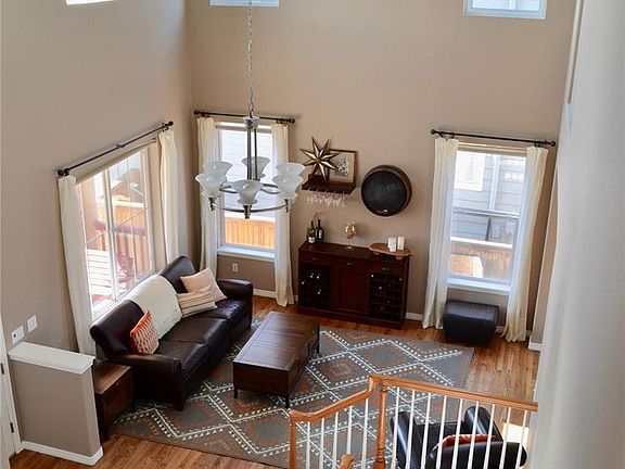 Bright and open home features 4 bedrooms, 4 full bathrooms, and mountain views. Main floor has an office/playroom with french doors and a separate laundry room. Jack and Jill bathroom and each upstairs room has their own separate vanity. Great yard with maintenance free stamped concrete and a pergola. Covered front porch with swing, build in fire pit and outdoor piped in gas grill are all great for entertaining. Finished basement features a full bathroom and an extra bedroom. Newer roof, hvac system and hot water heater. Lots of great trails and shopping within walking distance.