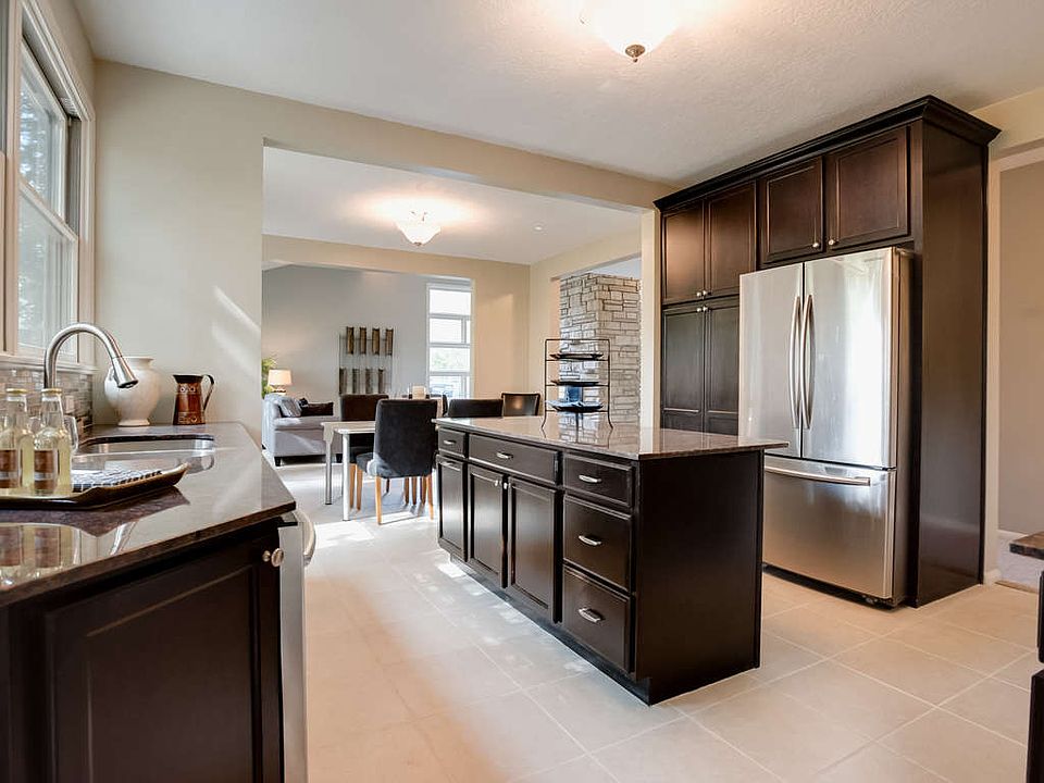 One of a kind, sprawling rambler with Twin Lake views. Full house remodel with granite tops with center island, custom espresso cabinetry with built in pantry, stainless steel Samsung appliances and gas range, custom tile/glass/metal backsplash, 16x16 tiled floors, and formal dining room. Main floor family room with see thru 2 sided stone fireplace, unique ambient ceiling main floor lighting, giant 25x14 deck. 3 beds on one level with private master bath, double built in linen closet, newer wind, Directions Hwy 100 to 50th Ave,, N to France Ave, N to Oak St, W to home.