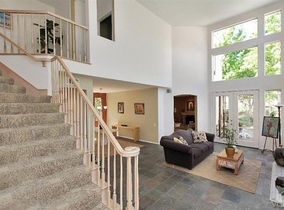 Beautiful Belmont home located at the end of cul-de-sac provides you with privacy and tranquility. From the lovely front courtyard to the colorful backyard retreat, you will feel right at home. Home features a light and bright open floor plan with soaring ceilings, tons of windows and freshly painted designer colors. Other features include, Spanish tile, slate flooring and newer carpet. Home boasts a formal living room, formal dining room, large kitchen with eat in area adjacent to the family room w/fireplace. The staircase leads you to two large bedrooms with Jack & Jill bathroom, wide hallway with skylight and a huge master suite, which includes a large sitting area, large master bath with separate tub and shower, dual vanities and large walk-in closet. Located at the end of a cul-de-sac, this home backs to open space and features a backyard tropical paradise. Includes community pool and spa and is close to schools, parks and shopping. This home is a MUST SEE!