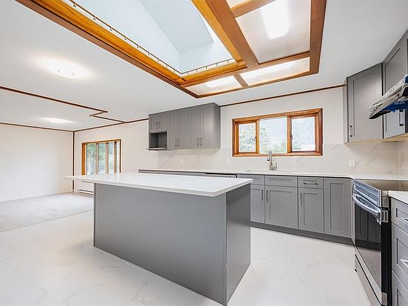 Sunlit kitchenBay-window dining areaBreathtaking mountain viewsFamily roomDouble-sided fireplacePartly covered deckPrimary suite
