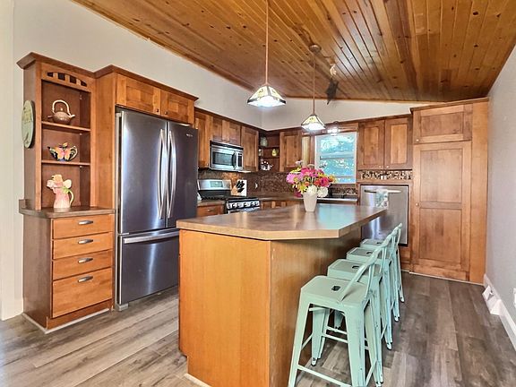 This beautifully updated 4-bedroom, 2.5-bath ranch home offers approximately 2,200 square feet of comfortable living space in a super private setting just outside of Rhinelander. The home features modern updates throughout, including new flooring, an updated kitchen with stainless steel appliances, and newer windows. The spacious backyard is perfect for entertaining with a horseshoe court, and plenty of room to relax. Enjoy the outdoors from the giant screened-in porch and watch the deer come through the back yard, or loons flying overhead. A 2-car detached garage with additional storage space provides even more convenience in this charming property.