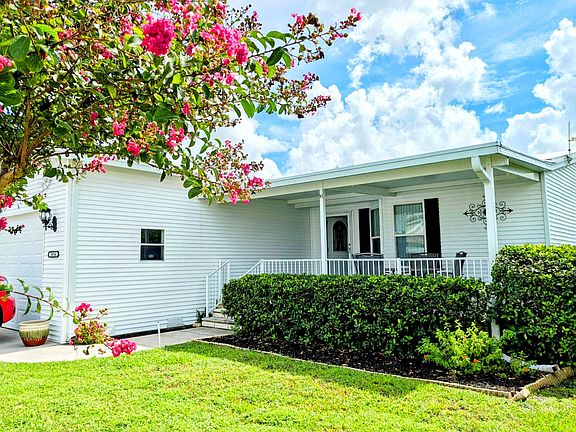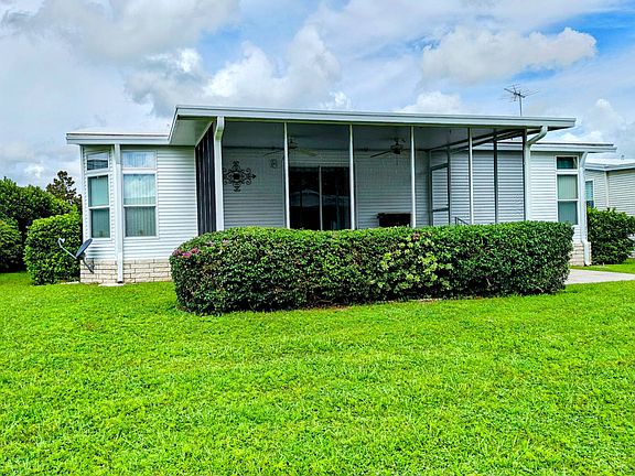 A RARE OPPORTUNITY TO FIND THIS MODEL AT THIS PRICE. OWNERS ARE TAKING ADVANTAGE OF AN OUT-OF-STATE OPPORTUNITY AND PRICING TO SELL. This one checks all the boxes--SIZE, FLOOR PLAN, CONDITION, AMENITIES AND LOCATION. This 2004 Palm Harbor had an additional 4' feet added to the width making it 44'x44' which makes it over 1,900' feet plus a front porch and huge rear lanai. There are 2 large bedrooms, an open kitchen with walk-in pantry, a large center island, breakfast bar, a really big living room, 2 full baths and an office/den with built-in wall shelving. The office and bedrooms have carpet. Seller is leaving the counter height bar stools and also a large leather Lazy Boy sofa in the living room. Window treatments remain in the living room and dining room. The entry, kitchen, laundry and bath floors have ceramic tile. The living room, dining room and hall is new laminate. An electric power lift platform provides handicap access into the home via the garage. The double garage has plenty of storage. The landscaping is neatly kept with a tall privacy hedge on one side. Southport Springs Golf and Country Club (SPS) is a PREMIER 55+ community with superb amenities including a beautiful Club House with ballroom/stage for banquets and dances, fitness center, card room, a restaurant/tavern with a fully stocked bar. Activities include golf at the 18-hole golf course, tennis, pickleball, horseshoes, bocce, shuffleboard, power walking, bingo, potlucks, pool tables, and line dancing. You might prefer a dip in the heated swimming pool or relax in the two hot tubs. SPS has over 500 homes and is pet-friendly with a place to park your RV or trailer. SPS is less than two miles from shopping, medical facilities, dining, and houses of worship. Only 45 minutes from downtown Tampa and the Tampa International Airport. There are many nearby attractions like Busch Gardens, many beaches along the Gulf of Mexico. Go see the Tampa Bay Buccaneers, TB Lightning, TB Rays, Orlando Magic, as well as spring training with the New York Yankees. Family fun is also readily available. The excitement of Orlando's theme parks includes Walt Disney World, Epcot Center, Universal Studios, and SeaWorld which are just 60 miles away. There is truly something for everyone in this friendly and wonderfully maintained Florida community.