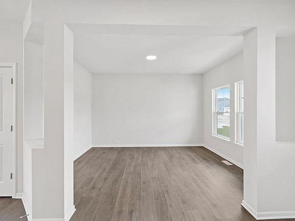 Welcome home to the Sedona! This home features a farmhouse exterior, 3 car garage, rear covered porch, and full basement w/ rough in. Immediately upon entering the home you are greeted by a flex room adorned with architectural columns - perfect for a formal dining room or home office. The great room, which is anchored by a modern electric fireplace, showcases volume ceilings, and is open to the kitchen & breakfast room. The kitchen features gray maple cabinets, quartz countertops, backsplash, large island, walk-in pantry, and stainless-steel appliances. The convenient main floor laundry space features a utility tub and cabinetry. Relax upstairs in the owner's suite that has a large walk-in closet, and private bath with a custom tiled shower & double bowl vanity. Also located on the second floor are 3 spacious bedrooms and a guest bath. Additional upgrades include an architectural trim package, upgraded fixtures, and lots of laminate plank flooring.