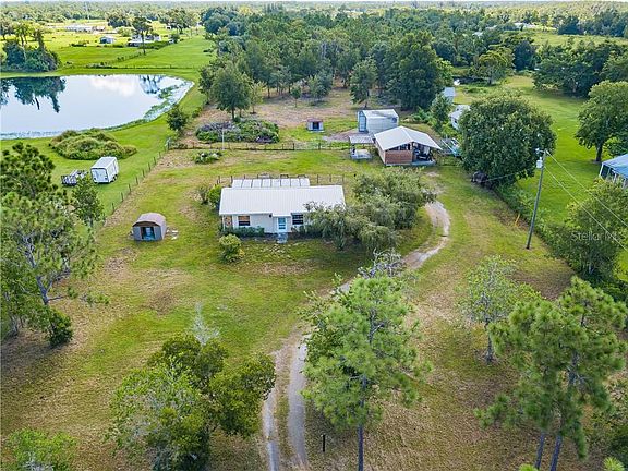 Retreat to the peaceful country setting of St. Cloud! This beautifully maintained home sits on 2.5 +/- acres of flat, mostly cleared, land! The perimeter of the property is fenced and cross fenced with a gated front entry! Inside the home you will find 3 bedrooms and 2 bathrooms, a spacious laundry room inside, ceiling fans throughout and fresh paint! Recent upgrades include a new metal roof (2015) which can last up to 70 years!!! A newer AC unit, well and well pump, FLO TEC water treatment system, septic and drainfield! The kitchen features granite countertops and solid wood cabinets! Large pole barn outside includes large carport, big enough to bring the RV! Relax in your oversized Florida room (30X12) with a beautiful view! No HOA and zoned for horses!