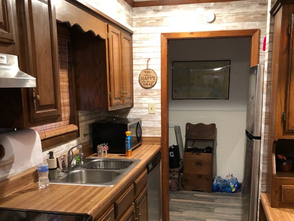 3 bedroom 1 bath newly remodeled house with 12x40 wood deck across back of house with 12x10 storage shed.The property is 17 acres with a lot of hard woods and wildlife on it.also has 24 mobile home pads with water sewer and electric phone and cable hookups would be able to have 48 camper spots on on existing utilites. The 40x80 building on it can be used as storage or rent out.In the process of removing old trailers on pads to start renting camper spots. The property has its own well feeding all camper lots and house .It is within 1 mile of public boat ramp with lots of road frontage great investment property.