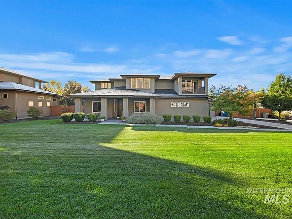Experience luxury and comfort in the heart of Harris Ranch with this exquisite, tastefully updated home on a rare 0.40-acre estate lot. Designed for refined living and effortless entertaining, it blends timeless craftsmanship with modern elegance. The two-story great room features soaring ceilings, a statement fireplace, and walls of windows that fill the space with natural light. The gourmet kitchen impresses with new cabinetry, premium appliances, sleek countertops, and a massive island perfect for gatherings. The main-level primary suite provides a private retreat with spa-like finishes and patio access, while the upstairs bonus room with Jack & Jill bath, built-in bar, and balcony overlooking the foothills offers ideal space to relax or entertain. Outside, enjoy a built-in BBQ, covered patio, hot tub pad with privacy screening, built-in garden boxes, and double-gated side access. The three-car garage includes epoxy floors, custom storage, a dedicated bay for a workshop or gym, and a built-in dog wash. A sunken den closet makes the perfect future wine cellar. Perfectly situated among the prestigious estate lots of Barber Drive, this Harris Ranch gem offers elegance, function, and an unmatched lifestyle near the Boise River, Greenbelt, and Bown Crossing.