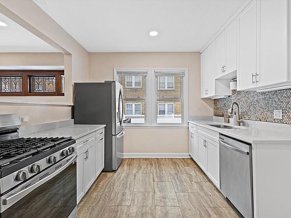 Welcome to this charming Cudahy duplex just minutes from the lake and within walking distance to Sheridan Park on the lakefront. The home features a new oversized 4-car garage and brand-new fence for added privacy. The lower unit offers restored woodwork, wood floors, fresh paint, first-floor laundry, and a new 2023 kitchen with quartz counters, new cabinets, appliances, and a walk-in pantry. The updated bath boasts an oversized custom Kohler shower, new fixtures, and tile, with two bedrooms completing the space. The bright upper unit includes two bedrooms, wood floors, a tiled bath, walk-in pantry, and private porch. A cozy patio adds outdoor appeal--an excellent owner-occupant or investment opportunity in a prime lake-area location.