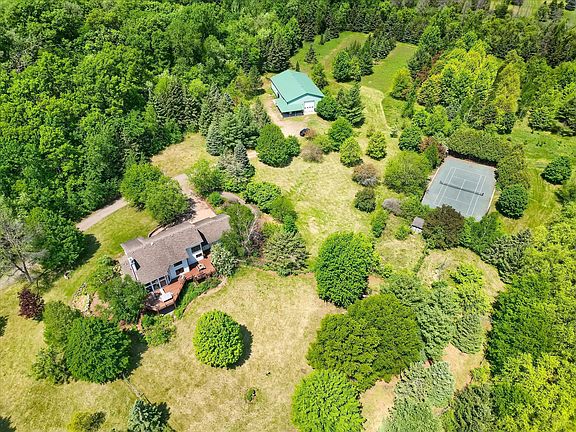 Private Paradise Consisting Of 38+ Acres. Former Tree Farm, Now A Beautiful Setting Of Mature Trees With Trails Throughout Property. Regulation Clay Tennis Court, Plus A 50x80 Pole Building To House Your Toys. The Home Is A Comfortable 2 Story With Soaring Ceilings And Wonderful Views Out Every Window. Attached 3 Car Garage Plus Lower Level Garage. Portion Of Pole Building Has In Floor Heat. This Is The Home That You Have Been Looking For If You Desire Total Privacy With Acres Of Outdoor Activities At Your Doorstep. Best Of All You Are In The Quaint Afton Area That Is Close To Everything Yet Retaining That Country Feeling. You Could Wait Years And Not Find Another Property Like This!