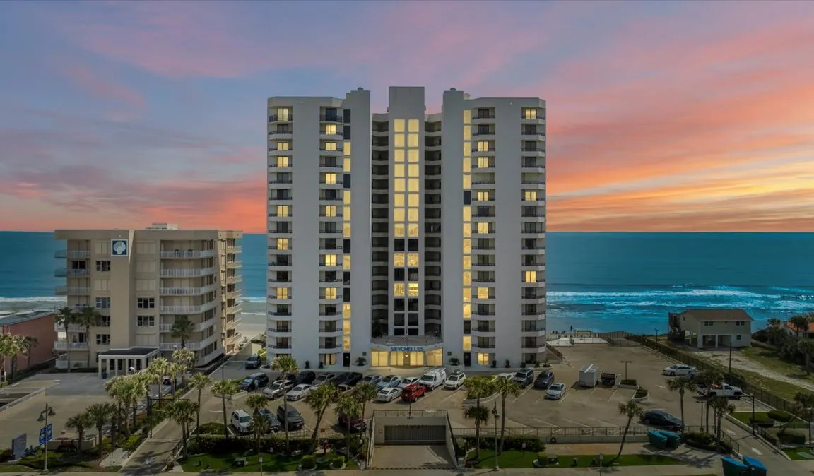 Experience luxury oceanfront living in this fully renovated penthouse condo at Seychelles in Daytona Beach Shores, FL, offering direct oceanfront southeast exposure with uninterrupted panoramic views of the Atlantic Ocean. This beautifully updated residence features modern coastal finishes, including porcelain plank tile flooring throughout, newly installed hurricane-impact windows with storm shutters, ...