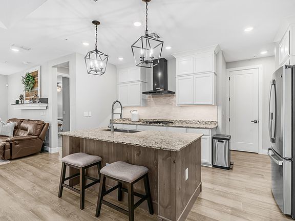 Downstairs primary suiteSpacious loftAbundant natural lightWalk-in pantryShiplap-accented islandTiled backsplashCrisp white cabinetry