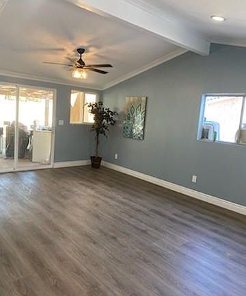 (More photos coming soon)! This fantastic, beautiful home has been gutted and renovated and ready for a new Owner. So many new UPDATES and UPGRADES! As you enter through the front door you will see large, bright living room with recessed lights, high ceilings, new paint, new laminate floors, and tons of light pouring in, also an adjacent spacious dining area. A brand new remodeled kitchen featuring: new cabinets, new quartz countertops, lots of counter space, ceiling fan, and a new stove. The open floor concept of this home is great for family gatherings. (Mini split-Air conditioning and heat Pump). Three good size bedrooms also have been freshly painted and have new laminate floors, closets, and ceiling fans. The original old shower, sink, etc. have been completely removed and rebuilt completely!, with a beautiful soaking tub, new sink, tile, mirror and fixtures. This home has new electric outlets throughout, new ROOF, complete new dry wall, wood and insulation- (as it is known- that many of these homes without any upgrades, still in their original state, have asbestos)- This Owner has pride of Ownership and resolved this problem., (this home should be good), as all the old dry wall, wood and insulation have been removed and brand new dry wall, wood and insulation- have been installed! New vent and doors, and almost all the windows have been o replaced. (This home appears to have an ez option, if one wanted to add an ADU or Guest Unit). The home has a direct access garage for convenient entry and a secured metal gate on the front- (for extra security). Spacious back yard is fenced with a block style fencing and is great for entertaining and family cookouts. This home is located in a nice, residential neighborhood, also, it is in close proximity to shops, entertainment, and schools. A two car garage and a large patio covering in the front and back of the house for your enjoyment. Also washer and Dryer Hook Ups! (You can rest assured, that this home is in excellent condition. Do not miss a chance to call this home your own!!