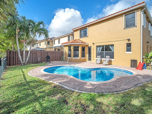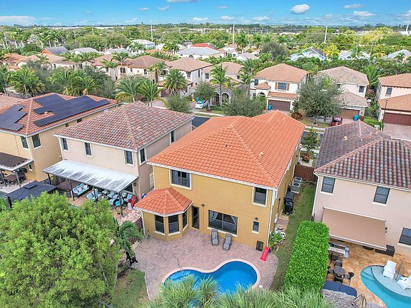 Stunning home in Aspen Glen, a boutique community. This 5-bedroom, 4-bathroom residence features a 2-car garage, pool, a modern Smart Home setup, including keyless entry, a Smart Thermostat, and Ring cameras. The open-concept design boasts 9' ceilings, a gourmet kitchen with granite countertops, stainless steel appliances, a walk-in pantry, and a breakfast nook. 1 bedroom and full bathroom downstairs off the family room! The upstairs primary suite offers dual walk-in closets and a spacious ensuite bathroom. Enjoy the bonus loft space upstairs, perfect for a den/office + 3 additional upstairs bedrooms. Backyard oasis features a sparkling pool, lovely landscaping, and garden views! Includes accordion shutters and panels. Low HOA, pet friendly. Near schools, shopping, beaches and parks. Home has LG front-loading washer and dryer, Generator transfer switch installation, storage under the stairs, and recent updates like a new dishwasher (2022), 2 A/C units, one put in in 2022. pool pump (2022). The large primary suite impresses with a French door entry, dual vanities, and a soaking tub. Additional highlights include front and back gutters for efficient drainage. This home combines comfort, functionality, and thoughtful updates throughout. Live the Boynton Beach lifestyle, enjoy premier shopping, dining, beaches, and parks just minutes away. From art shows to city events, there's always something happening in this vibrant coastal community. Nestled between Boca Raton and West Palm Beach, Boynton Beach offers the perfect blend of coastal charm and urban convenience. You will love living here! Information deemed reliable, not guaranteed, subject to errors. Info, including square footage, herein is believed to be accurate but not guaranteed & may be subject to errors or omissions & may be changed without notice. Buyer to independently verify room sizes, schools, roof info and age, hurricane protection, appliance age and any/all other information deemed important to buyer. Keyless entry for home and garage.