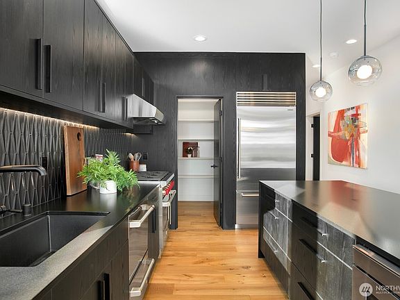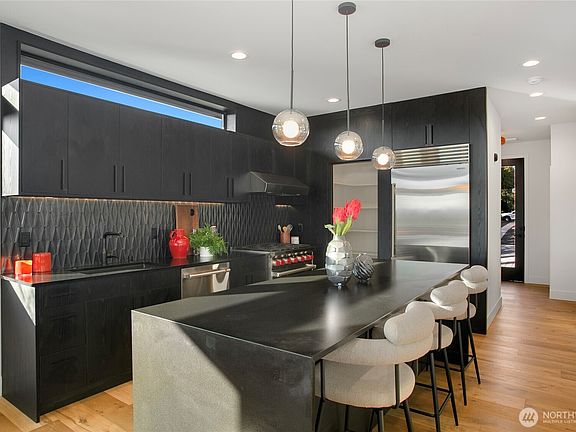 Sleek, bold, built to last—this Mt. Baker new construction home on Cascadia Ave S is a Modern Masterpiece. With six bedrooms and a primary suite featuring a spa-grade bathroom, you’re set for ultimate comfort. The open-concept main floor offers spacious living and dining areas centered around a see-through fireplace and chef’s kitchen with 6-burner Wolf range, Sub-Zero fridge, and walk-in pantry. The lower level provides versatile space with a full kitchen, bedroom, and living area opening to a large deck and level, fully fenced backyard. Wellness and relaxation await with a private sauna and cold plunge tub. An expansive rooftop deck crowns this remarkable home, offering sweeping views of Lake Washington and the city of Bellevue beyond.