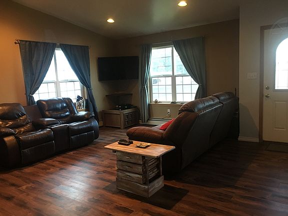 Spacious 4 bedroom 2 bath home w/garage and a fenced in back yard located in WOODLAND Estates on a quiet cul-de-sac. New whirlpool black stainless steel kitchen appliances. Wood stove in living rm to cut down on oil price. Laminate flooring with new protective coating. Jacuzzi tub in master bedroom and walk-in closet. 40 ft new large back deck.