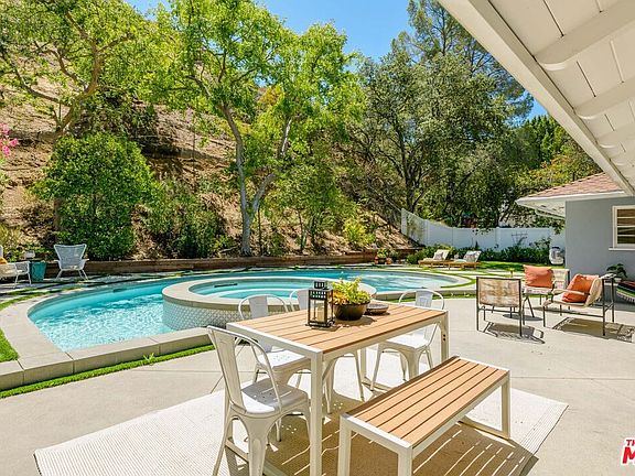 Tucked away up a long driveway, south of Ventura Boulevard sits this immaculate single-story residence on a 20,000+ sq ft lot. Located in the coveted Lanai School District with easy access to the city and the valley, this 3BD + Office home's sophisticated design, high-end upgrades, and unique charm provide the perfect balance of relaxation, style and comfort. The grounds include a detached outside space perfect for a second office or gym and the additional office could easily become a 4th bedroom. Newly renovated with a chef's kitchen featuring Wolf and Kitchen Aid appliances, custom cabinetry, bright living spaces, and a new sparkling spa and pool. Off the primary suite sits a large private side yard perfect for a sitting area or dog run. The spa-like en-suite bathroom offers high-end fixtures, a spacious dual vanity, classic marble touches and a dual head, large shower. Two additional bedrooms provide generous closets, ideal for a family or hobbies. The office/guest room adapts as a home office, guest suite, or studio with treetop views. The backyard, a private paradise centered around an oversized pool and spa, is framed by lush landscaping and multiple areas for dining al fresco. Here you will find the detached space overlooking the beautiful outdoor oasis. The finished epoxy-coated two car garage includes custom cabinetry, insulation and an attic space. Minutes from shops, dining and a top rated school, this home offers quiet seclusion without sacrificing convenience.
