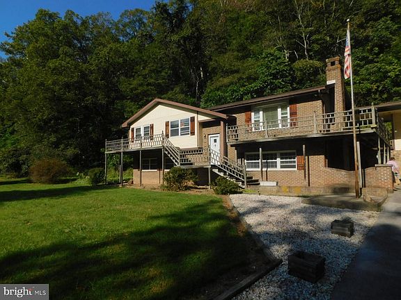 Large home that has endless possibilities! Split Foyer with finished living quarters on the upper level with kitchen/dining area, bright living room , 2 bedrooms with a shared bathroom and a primary bedroom with private bathroom. Lower level is unfinished and could be turned into an apartment with a rough in for a bathroom already there.. There is a 4 bay garage detached garage. Above the garage is three large partially finished rooms . The largest room is 32 x 34 with temporary shelving that could be used as a business or apartment. The front of the has a nice paved driveway and partially wooded lot.