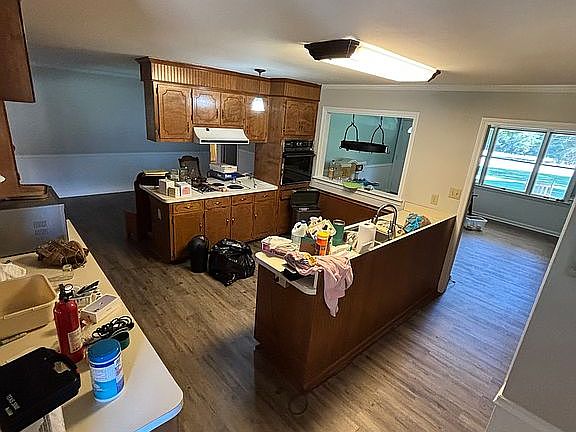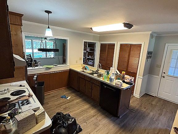 Custom built home with brick except for sunroom. Open kitchen, den and dining room. Master bedroom with dressing area and sink, full length of wall closet. Master bath full tub and 2 closets. Bedroom 2 has custom built storage with closet and hardwood floor. Bedroom 3 has full length closet. Laundry in hall closet.