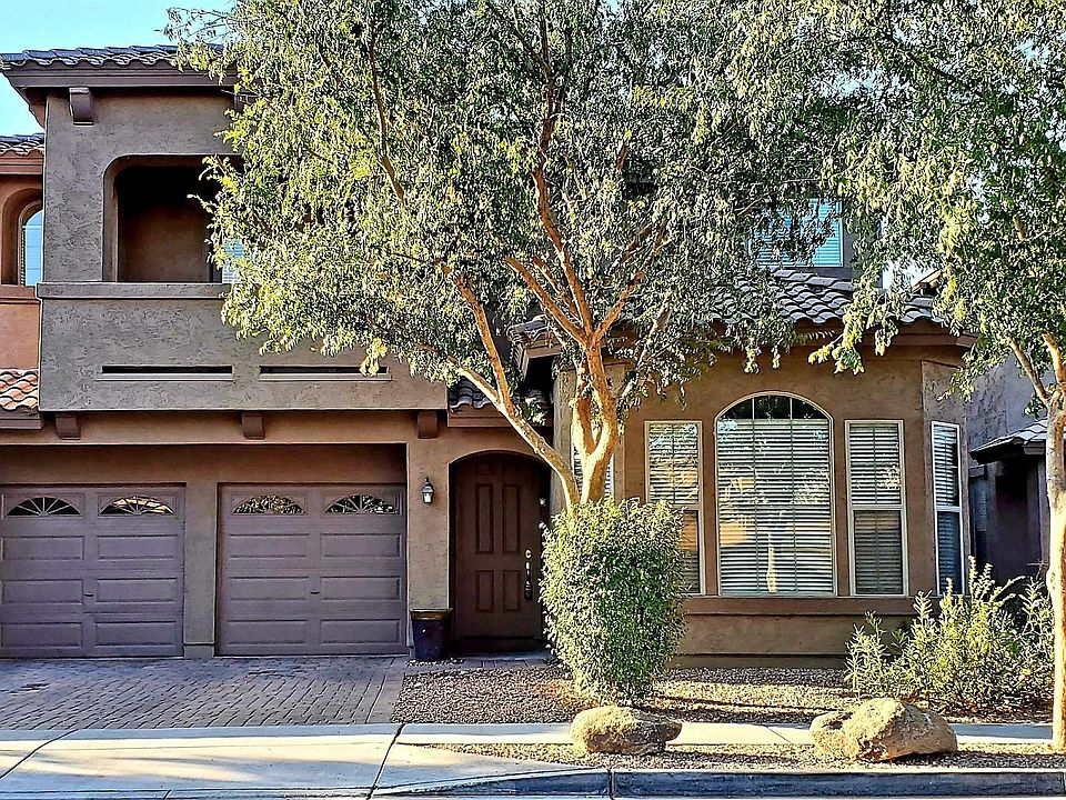 Lots of space in this Amazing move-in ready 5-bedroom, 3-bath home. Lovely Gilbert community with two parks, walking paths, tot lot, basketball court & volleyball! Front yard has desert landscaping, paver driveway, along with an extended 2 car garage. Interior boasts two-tone paint t/o the home, 9-foot ceilings, spacious living areas, larger bedroom upstairs; perfect for a game area & it has its own balcony. In addition, there is a bedroom and full bath downstairs that is great for guests. Kitchen showcases stainless steel appliances w/ gas range, refrigerator, ample upgraded cabinetry, sizable island & breakfast bar that opens to the great room. Master suite has a sitting/office area with built in shelves w/flat screen tv. Master en suite has dual sinks, soaking tub & separate more...