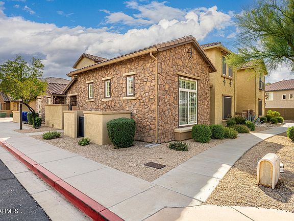 Welcome to the gated community of Fireside at Desert Ridge! This wonderful community has a lot to offer, including a clubhouse, sports courts, and a community pool. The home is a two story and has a tasteful stone work and stucco exterior. There's a nice courtyard off of the kitchen to enjoy the cool weather. Inside you'll find high ceilings and a great room near the front door. Perfect for entertaining. The kitchen has an open feel and features an island and walk in pantry. Upstairs is a bonus room and one bedroom is currently set up to be a nice office, which has a built-in desk and cabinets. The master bathroom has a separate tub and shower as well as dual vanities and a private toilet room. Plantation shutters and a freshly painted interior have this home ready to show. Come and see!