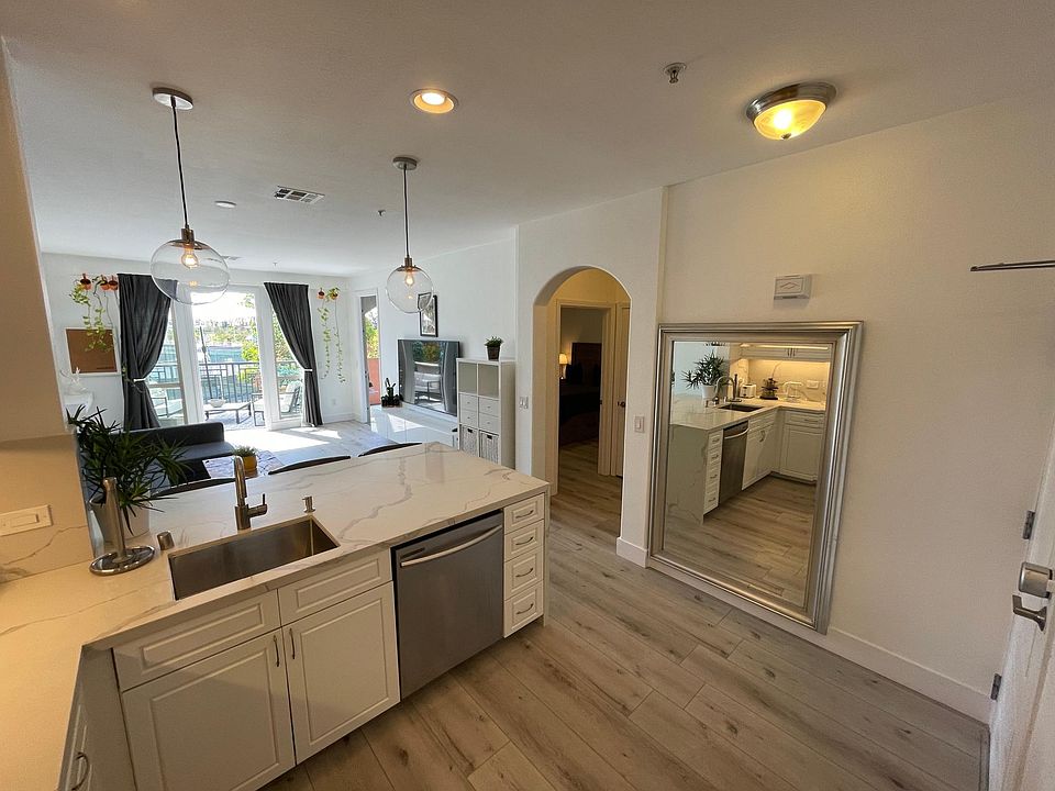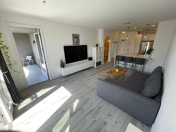 Available immediately, please apply here for consideration. Link to video: Absolutely the best location for a professional working in the neighborhood, looking to enjoy all the benefits of Living across the street from newly expanded and renovated Highlands Plaza and the new One Paseo Plaza - offering some of the best dining and shops in all of San Diego. Minutes from the beach and freeway access, this unit has views of the Carmel Valley Tennis Club (only $10 per hour!), Carmel Valley Rec Center, etc. Jimbos (organic grocer), Ralphs Fresh Fare (larger selection), and tons of shops and services 5 mins walking distance Water, sewer, and trash utilities included. Gym onsite, 1 underground parking plus plenty of additional unreserved parking available. 2 balconies with plenty of storage - the condo comes semi furnished and highly upgraded with brand new bed, bedframe, drawer chest, 75" 4K TV, Apple TV, Smart lock, couch sleeper, coffee table, bar stools and computer desk, front loading washer dryer, etc. I'm confident this is the nicest available condo in the neighborhood