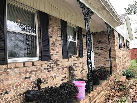 One story brick ranch on approx 5.6ac in TN remaining land in Ky. This lovely country home offers 3 bdrm w 2 1/2 bath w utility having the 1/2 bath. Great dining area w Stone Gas FP w insert. Sidewalk entry into a covrd frnt porch and good size LivRm. (3) pole barn w 1 pole brn having Office attached. Det 2cg & Home w Attached garage and wrk space w cabs. Crop proceeds go to seller. 220 in RV Shop Tn land, House, 2 Barn(s), Shed(s), & shop. Call for clarification.