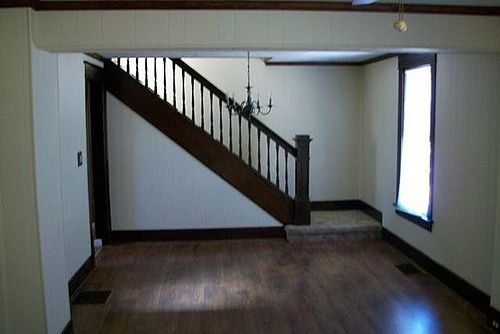 3 bedroom, 1 bathroom home with kitchen appliances, rear deck, off street parking on a large lot. Main floor living capability with 1 bedroom, bathroom an laundry room on the main level. $700 per month plus utilities. Lease and security deposit of $700 required. This is a pet and smoke free home. Broker owned.