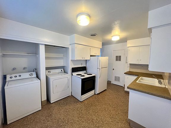 This is a comfortable & generously sized two bedroom 1 bath apartment. Hookups are tucked away in a large sunny kitchen that has space for dining, lots of pine cabinets, and nice appliances. Tons of storage throughout the apartment! A linen closet, shelves above the laundry, medicine cabinet in the bathroom, a FULL double sized closet in the living room, and a full wall of closets in EACH bedroom