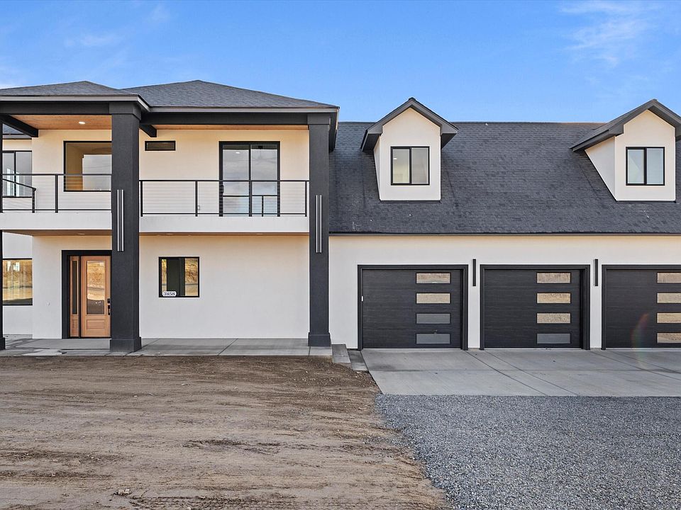 Experience unparalleled craftsmanship in this custom built 2025 luxury residence by Reynaldo's Construction. Situated on 2 pristine acres, this architectural masterpiece offers 4 bedrooms, 4 bathrooms, an executive office, and a spacious game room, encompassing 4,100 sq ft of refined living.A grand entrance sets the tone with a striking modern chandelier and engineered hardwood flooring that flows seamlessly throughout the main level. The designer kitchen is built for both beauty and performance featuring quartz countertops, a massive waterfall quartz island, gourmet appliances, a butler's pantry, and a full quartz backsplash.The living room makes an unforgettable impression with 23 foot ceilings, exposed wooden beams, an expansive window wall, and a stunning fireplace as its focal point. An exposed wooden floating staircase adds to the home's modern artistry.The luxurious primary suite offers a serene retreat with a spa inspired bathroom, complete with a garden tub, an oversized dual shower, and a large walk-in closet with an optional custom cabinet and shelving package for the buyer.The second level hosts three bedrooms, including a junior suite with a private balcony and sweeping Valley views, an additional full bath, and a generous game room ideal for entertainment.The oversized 3-car garage includes EV charging, and the exterior is designed for Northwest living with a covered porch and covered patio overlooking the Valley and mountain scenery. The property is future-ready with separate hookups for a jacuzzi, pool, shop, and automated gate.Every corner of this home showcases custom designs, premium materials, and exceptional craftsmanship, a true testament to Reynaldo's Construction.