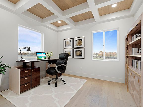 Stunning fireplaceExecutive officeDesigner kitchenExposed wooden beamsExposed wooden floating staircaseMassive waterfall quartz islandSweeping valley views