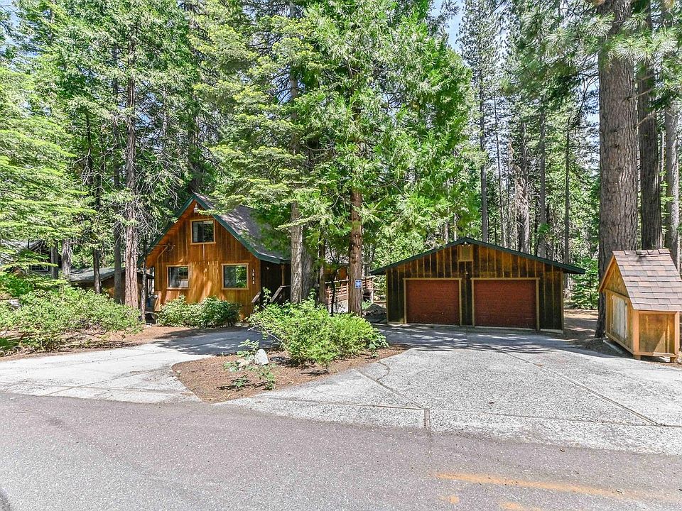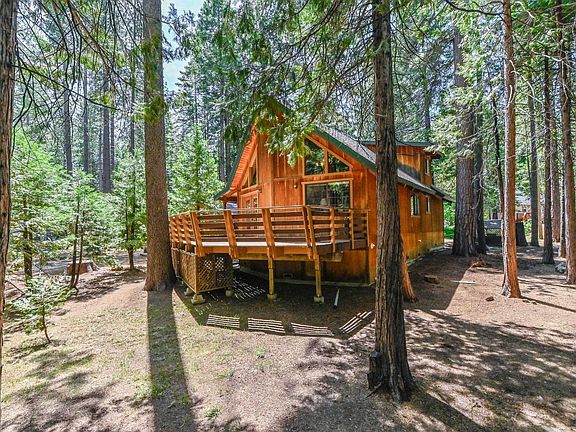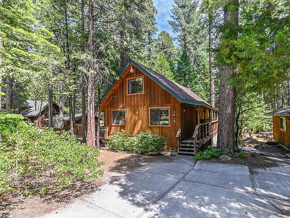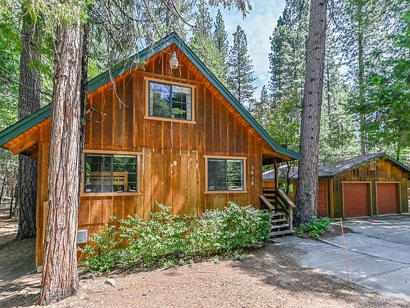 This home in Camp Connell is on a very special level lot with wide open forest views off the expansive back deck to enjoy the peace and calm of mountain living. The coveted chalet style home has a paved circular level driveway and a detached 2 car garage and plenty of off street additional parking. The interiors offer a large kitchen with an ample counter bar, a spacious dining area and a warm family room with plenty of space to gather around the wood burning stove while enjoying the open beamed architecture. Upstairs you will find a large bedroom, full bath and a loft area for added space with two additional bedrooms downstairs that include two custom built bunk beds hand crafted from felled trees off the property. The home is being sold furnished and is the perfect second home for an active family, being a short drive to Big Trees State Park and only 30 minutes to Bear Valley Ski Resort where you can enjoy downhill skiing, snowboarding, and x-country skiing in the winter, and mountain bike trails and hiking in the summer, as well as the Bear Valley Music Festival. Originally built as a full time residence this home has many thoughtful details such as water shut off valves located inside the home and a transfer switch so a portable generator can be easily connected to power most of the home, including all kitchen appliances during power outages. Optional membership to Big Trees Village just minutes away will provide additional seasonal fun at the rec center, 2 private pools, disc golf, bocce, basketball, tennis and pickleball courts and a host of family friendly activities all summer.