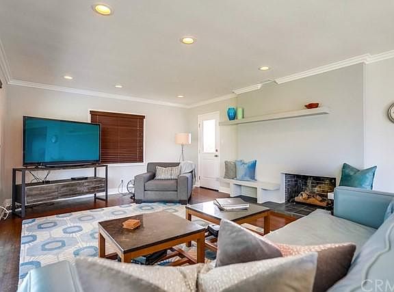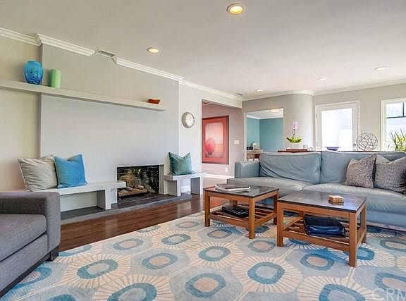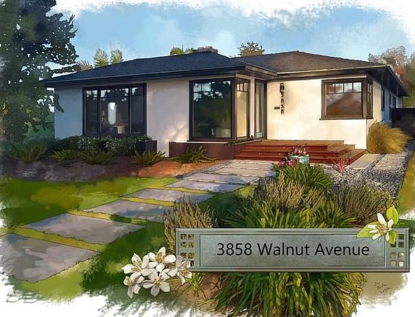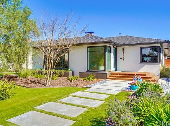This incredible home is located in the highly sought after neighborhood of Bixby Terrace. It is sited on a premier wide residential street with an extra deep parking strip that sets the home pleasingly nestled back from the street. It was crafted in 1948 by noted architect H.G. Thursby who designed many Streamline Moderne homes and buildings in Los Angeles and surrounding areas. The home retains its gently rounded corner walls, floating fireplace mantel and unique built-in hearth benches. Featuring 3 spacious bedrooms, a den and 2 full bathrooms. The living room is highlighted by original oak floors and floor to ceiling windows allowing the natural sunlight to filter in. The kitchen has recently been remodeled with Carrara marble countertops and high-end stainless steel appliances. The kitchen is open to the generously proportioned dining room with its own fireplace and single paned doors leading to the side entertaining patio. The primary en-suite features a large walk-in closet, spa-like bathroom and bedroom with fireplace and doors leading to the rear yard. Both guest rooms are spacious and share a tastefully remodeled bath. The lush rear yard is very private with a tall custom built horizontal fence, wide expanse of lawn, large poured in place patio pavers covered by a custom iron pergola. The two car garage has a large storage area built out to the property line. Other features include inside laundry, newer HVAC system, newer roof, updated electrical and plumbing.