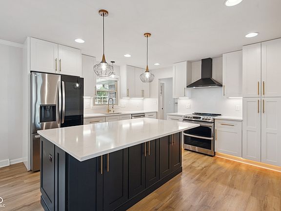 Better Than New and A Yard with Privacy! Set on a low trafficked street, this beautifully Renovated Home (2023) has been tastefully updated with high-end finishes. This thoughtfully designed home combines modern design with functional space and a yard many dream of. Step inside and notice the bright modern feel of this open concept home with on-trend lighting and beautiful vinyl flooring. This chef's dream of a kitchen is a showstopper - 42-inch white cabinetry, quartz countertops, a massive island, gas stove with range hood and built in microwave. This Home features a first-floor primary suite with a walk-in closet and bath with a double vanity and walk-in shower! The other 2 main-level bedrooms boast beautiful lighting, and a convenient double vanity bath down the hall. Enjoy the convenience of a first-floor laundry room as well, equipped with shelving, large cabinet and fold-away drying rack (2024). Take a walk downstairs to the finished basement with a spacious office/rec room and huge living space with an eye-catching wet bar, half bath, and ample unfinished storage space! Soak up summer nights on the patio and pick a grape off the vine! The yard is a gardeners dream or for anyone who enjoys fresh food and privacy. There are established grape vines and five fruit trees on the property. Enjoy planting a few of your favorite veggies in the garden beds already handmade for you! (All fruit trees are big enough to fruit but small enough to be easily removed.) Additional special features include finished garage with Epoxy flooring, custom-built shed (2024), concrete driveway, whole home water filtration system and softener (2024), and a high-end camera system (2024)! This home lives larger than many its size and offers exceptional value-don't miss it!