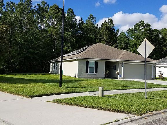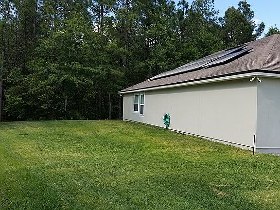 3/2 home built in 2011, (Two Creeks community, Clay County); large pie shaped lot overlooking wooded preserve. Wood-laminate floors; open floorplan w/family room; screened lanai with preserve view (lots of birds!); eat-in kitchen w/espresso wooden cabinets, beveled edge counters and stainless appliances. Owners' bath includes walk-in shower, garden tub, dual vanities, and walk-in closet. Two secondary bedrooms (including walk-in closets) and a second full bath (including walk-in shower) are on the other side of the home. Indoor laundry area includes washer & dryer. Full irrigation. Architectural shingles. Solar (32) panel system. Two car garage includes shelving and a SABA 23 cubic foot freezer. Security system. A/C system, heat-pump water heater and many other appliances recently replaced. HOA amenities include playground, pool, weight room, community center. Neighborhood streets have low speed limits and sidewalks. Common roads are tree-lined and also have low speed limits, bike lanes and sidewalks. Convenient to shopping, schools, Eagle Landing golf course, St. Vincent's Hospital, SR 23 and Blanding Blvd.