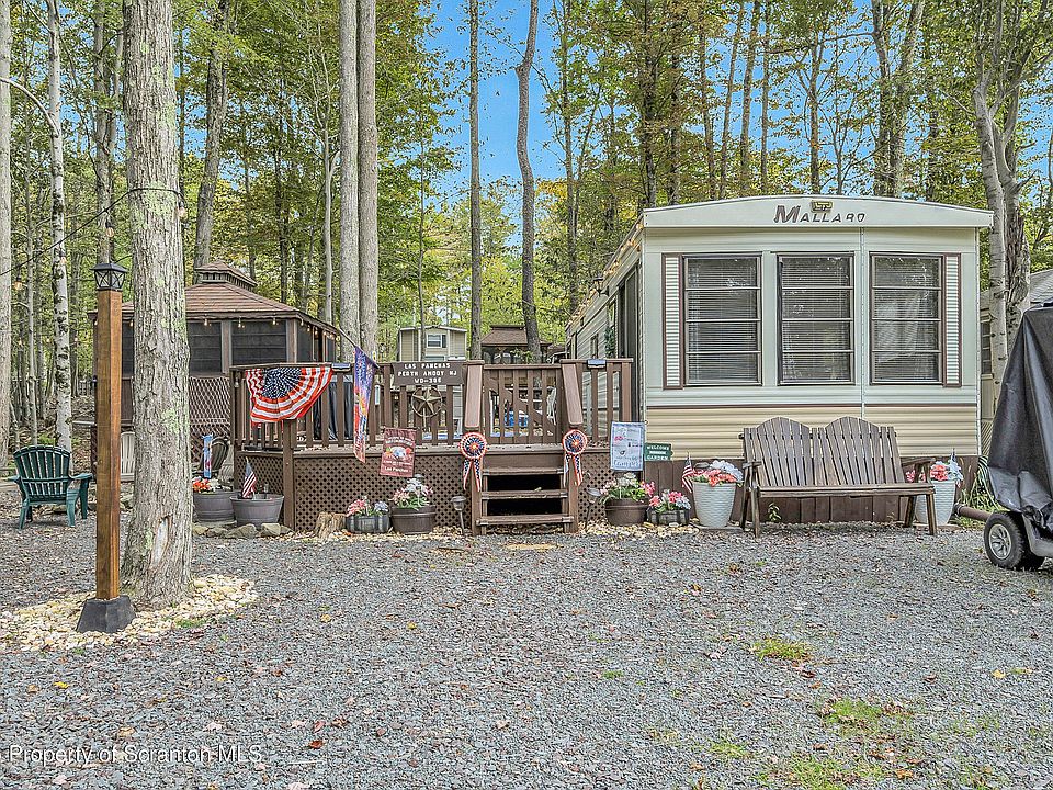 Tucked away in the peaceful Woodland section of Eagle Lake Recreation Community, this one-bedroom park model RV with hallway bunks offers the perfect retreat. Thoughtfully renovated with warm, welcoming decor, it's a space designed to give you that instant ''at home'' feeling the moment you walk through the door.Offered as a turnkey getaway, it even comes with a golf cart and grill--so you can settle in and start enjoying the good life right away. With its very comfortable and charming gazebo, you'll want to spend hours snuggled up with a good book or catching your favorite sports show in the fresh air.Spend your mornings with a cup of coffee on the deck, then take a short stroll to either Beach 1 or Beach 2, or wander over to the clubhouse to meet friends.Life at Eagle Lake is all about balance--whether you're relaxing by the lake, unwinding in the hot tubs, or enjoying a swim in the Olympic-sized pool. For those who love a little friendly competition, the community also features pickleball and tennis courts, softball fields, horseshoe pits, and so much more.This is the kind of place where memories are made and everyday living feels like a vacation.Eagle Lake is a year-round recreation community, offering four seasons of fun, though residential living is not permitted.