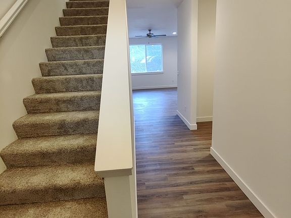 This upgraded townhome offers comfort and functionality with no shared walls, luxury vinyl plank flooring throughout the main level, and an open-concept great room filled with natural light from large windows. The kitchen includes stainless steel appliances with a gas cooktop and refrigerator, a spacious walk-in pantry, and extra storage under the staircase. A half bath and a convenient nook near the garage entry complete the main floor, along with access to the backyard featuring a patio, underground sprinklers, and fencing for privacy.