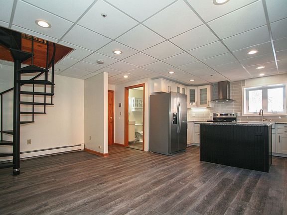 NEW CUSTOM RENOVATION Kitchen with stainless appliances, cooking hood, subway tile, farmer's sink, eating bar, and granite counters New floors throughout New carpet in bedrooms 2 bedroom unit located in the heart of downtown Walk to any restaurant/pub within minutes 2 levels, open concept Spiral staircase New kitchen floors 1 parking permit for the Orchard Street garage Shared deck Laundry HEAT and HOT WATER INCLUDED