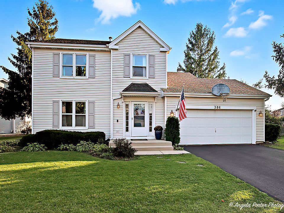 Welcome to 386 Copper Canyon Trail, a bright and comfortable home in the popular Cimarron neighborhood with highly rated Cary schools. This move-in ready two-story offers an open main level, great natural light, and the functional spaces today's buyers want. The kitchen features white shaker, soft-close cabinets, Corian countertops, stainless steel appliances, a built-in butcher block workspace, and a breakfast area overlooking the yard. The main level continues into a spacious family room with a wood-burning fireplace and vaulted ceiling, plus separate dining and living rooms ideal for gatherings, work-from-home, or flex space. The freshly updated basement includes brand-new carpet, a large rec room, and generous storage (including a 206 storage room and additional crawl). Step outside through newer sliders to a expanded two-tier deck, fenced yard, and storage shed-perfect for outdoor dining, pets, and weekend entertaining. Additional updates include a new sump pump and backup system, offering peace of mind. Located just blocks from the new Cary Splash Pad/Park, minutes to the Metra, schools, and downtown restaurants. A great opportunity to own a well-cared-for home in one of Cary's most loved neighborhoods. Schedule your showing today!