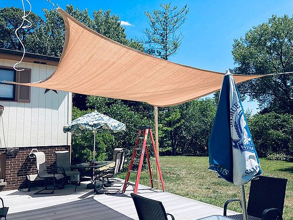 Fireplace/wood stove, composite deck, balcony, 12x 96 concrete drive, central air, wet bar, water softener, tile porch, sheds, overhead sewer, whole house fan, newer roof furnace water heater, five fans, dishwasher, 12 volt 2nd sump pump with 3 batteries, whirlpool tub, fire pit, insulated garage, workbench, brick 1st level, laundry rm w/table, many closets, master bath and walk-in, tile oak and carpet.