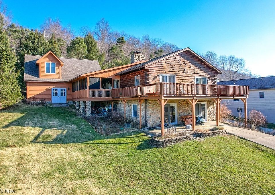 Discover the allure of this cozy lakefront log home at Lake Mohawk. Situated on 1.5 lots, offering a flat lot to the lake. Featuring two bedrooms and a full bath on the main floor, this residence emphasizes comfort and accessibility. The open floor plan with cathedral ceilings enhances the spaciousness, providing breathtaking lake views and a floor to ceiling stone wood burning fireplace. The kitchen is adorned with granite countertops and hickory cabinets, adding a touch of sophistication. Notable features include bamboo hardwood floors, a walk-out lower level with two bedrooms, additional living space, a full bath, and access to a patio area to enjoy your flat lot to the lake. The property embraces outdoor living with decking surrounding the home, a pergola at the entry, and a pavilion area by the water. Modern amenities include a new seawall in 2022, the oversized two-car garage comes equipped with a utility sink, double doors for easy yard access, and a loft area above. This versatile loft can be used as additional living or office space and features a full bathroom. Geothermal heating for year-round comfort. Recent upgrades, such as a 2023-installed hot water tank and water softener, a new cement driveway with traction, showcase the property's meticulous maintenance. This lakefront haven invites you to experience a blend of nature and sophistication, making it an ideal retreat for those seeking a timeless waterfront lifestyle. Lake Mohawk is a private gated community with an unlimited horsepower 500 acre lake, 9 hole executive golf course, club house, 3 beaches, tennis/pickleball courts and much more.
