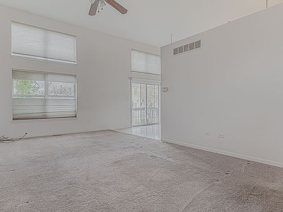 This tri-level home is a part of the Fieldstone Condo community and enjoys its amenities: snow removal, lawncare, and common insurance. Enter the home through the front patio and into the entry landing with convenient coat closet. Climb to the large main level living room featuring dramatic 12 ft ceilings and large vinyl windows with accordion blinds. The kitchen offers a roomy eat-in space with hanging light fixture and convenient pantry closet for extra storage. Walk through the sliding glass doors onto the balcony, where you can drink your morning coffee. The upper level primary bedroom features a large ensuite bathroom with dual vanity, standing shower, and soaking tub and a walk-in closet. The lower level family room with tall windows is cheery extra living space. Guest bedroom with walk-in closet. Laundry room with washer/dryer. Two car garage with opener. Selling AS IS.