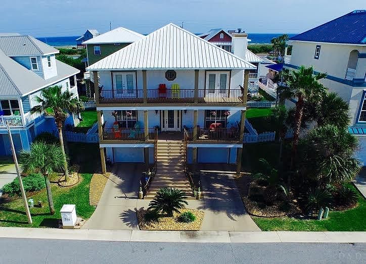 Coastal Living at its Best!! This home exemplifies those characteristics of southern style charm coupled with the emerald water,cool breeze and smells of the beach. Located in the gated community of Parasol West situated between the Gulf of Mexico and Ole River. To add to the enjoyment of the location, is a DEEDED BOAT SLIP with 10,000+ lift in place. Inside, main level has a large great room w/ travertine stone gas fireplace and views of Ole River. Directly off the great room are travertine stone columns which adjoin the breakfast nook and kitchen. The kitchen has unique concrete counter tops, touch 2O faucet,stainless steel appliances and icemaker. Also on this level is a full bath and formal dining room that could be used as an office w/ views of Ole River. Upper level consists of master bedroom and bath, two other bedrooms and full bath. All bedrooms including the master bath open to large common balconies with beautiful views of either the Gulf or Ole River. Master bath features double vanity, separate shower, whirlpool tub and walk-in closet. Master bedroom also has a walk-in closet. Crown molding throughout and Travertine flooring on main level and upper level bathrooms. Lower level floor has a bedroom and full bath which functions as a private guest suite with separate entry. Lower level bathroom has an access door to the backyard and outdoor shower for washing off after a day on the pristine beaches. Outside, home features 4 balconies with over 1,000 sqft of space adorned with beautiful iron railings adding to the charm and beauty of the home. The flowerbeds have been hardscaped for low maintenance and irrigation system is supplied by well. Other features include electric hurricane shutters at the flip of a switch and 2 car garage. Parasol West offers deep water boat launch, community pool w/ grilling area/pool house and pier. Paradise is Perdido Key and this home is designed for the enjoyment of ISLAND STYLE LIVING where everyday feels like a vacation!!