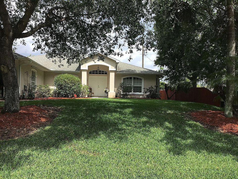 Quality built home by MGB Construction Co. - concrete block very nice porch overlooking canal ! WHY WE LIKE THIS HOUSE - solid concrete construction with hurricane panels - stainless appliances- lots of storage-kitchen cabinets and drawers for pots and pans ! A PORCH THAT BIRD WATCHERS WILL ADORE ! Honey color hardwood flooring in living room, dining room or den, and hallway ! Quiet Area - Great Neighborhood !