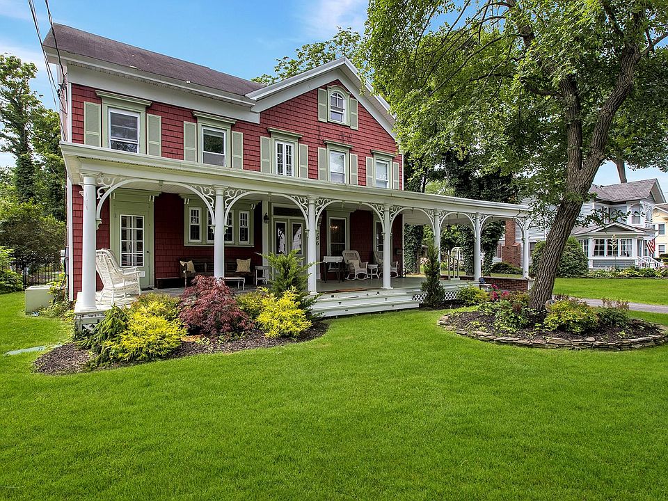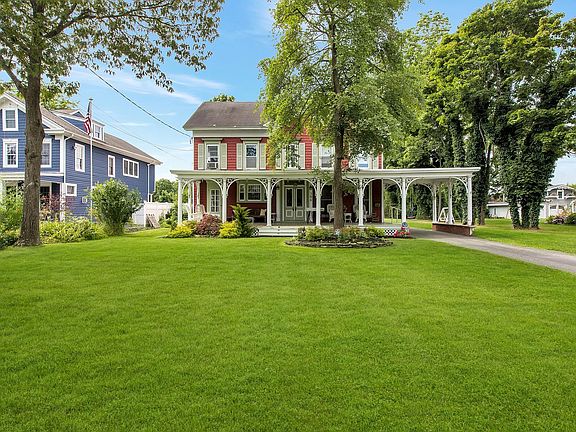 Welcome To "Summerfield"! This grand residence is prominently placed in a row of beautiful Victorians, dripping with original details that you must see to appreciate. Welcoming front porch, the long driveway through the porte cochere opens to your .75 acre property. The entry foyer offers built in bench seating and dual columns that flank the parlor entrance. High ceilings, crown moldings, several sets of french doors, built in china cabinets in the formal dining room, 3 carved marble ornamental mantles, den with wet bar, large eat in kitchen and "double" living room. Front and rear staircases take you to the 2nd floor where you'll find a spacious great room, 4 bedrooms, home office and laundry center. The full walk up 3rd floor is a wonderful storage space. The landscape includes a rear patio, plenty of parking and a "barn" with a bathroom and kitchen sink. This home evokes an elegant yet comfortable lifestyle that suits south shore living!